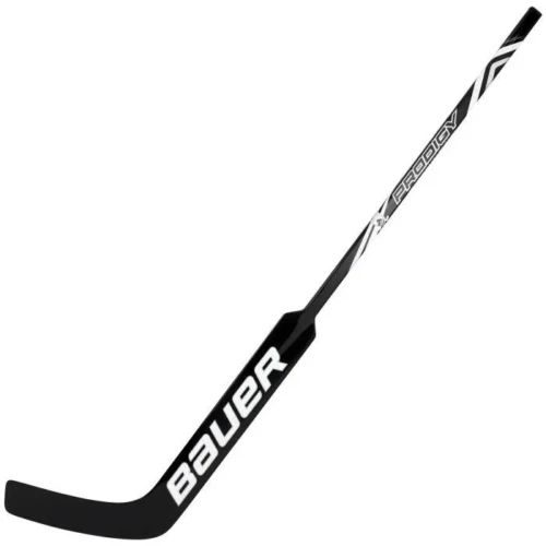 Play like the pros with the PRODIGY composite stick. It features a narrower handle and flat-front paddle geometry to enable maximum playability for the youngest goalies in net, along with a reinforced core for increased stiffness and puck control.